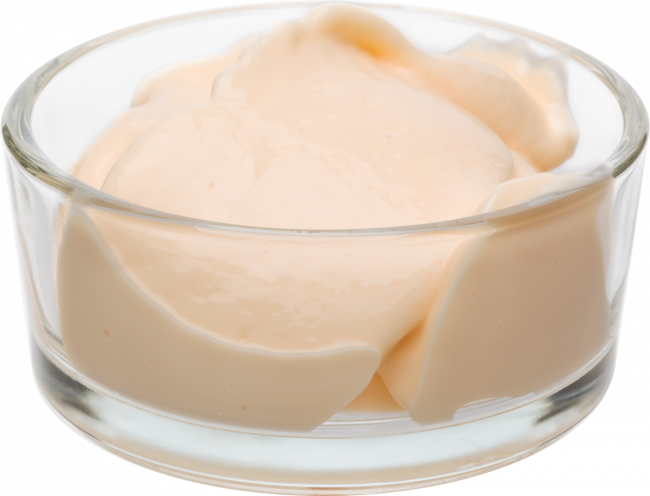 Leicht rötliche Mayonnaise mit einem zarten Paprikageschmack abgerundet mit einer feinen Essig-Senf-Note.